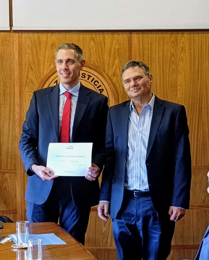 En la ocasión, CACOPI hizo entrega de un certificado como Miembro Honorario al Ministro Marco Riquelme, en reconocimiento a su rol institucional y en cumplimiento de lo establecido en el artículo 5 de los estatutos de la Cámara, que contempla la designación de autoridades de destacada relevancia.
